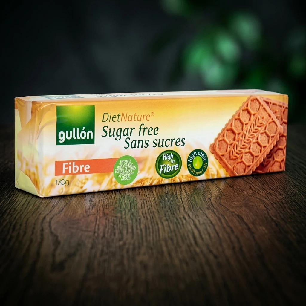 Făină integrală de grâu 58%, Îndulcitor (maltitol), Ulei vegetal (ulei de floarea-soarelui cu conținut ridicat de oleic) 16%, Fibre de mazăre 4%, Inulină, Oligofructoză, Agenți de încărcare (bicarbonat de sodiu, bicarbonat de amoniu), Emulsifiant (lecitină de soia), Sare, Arome