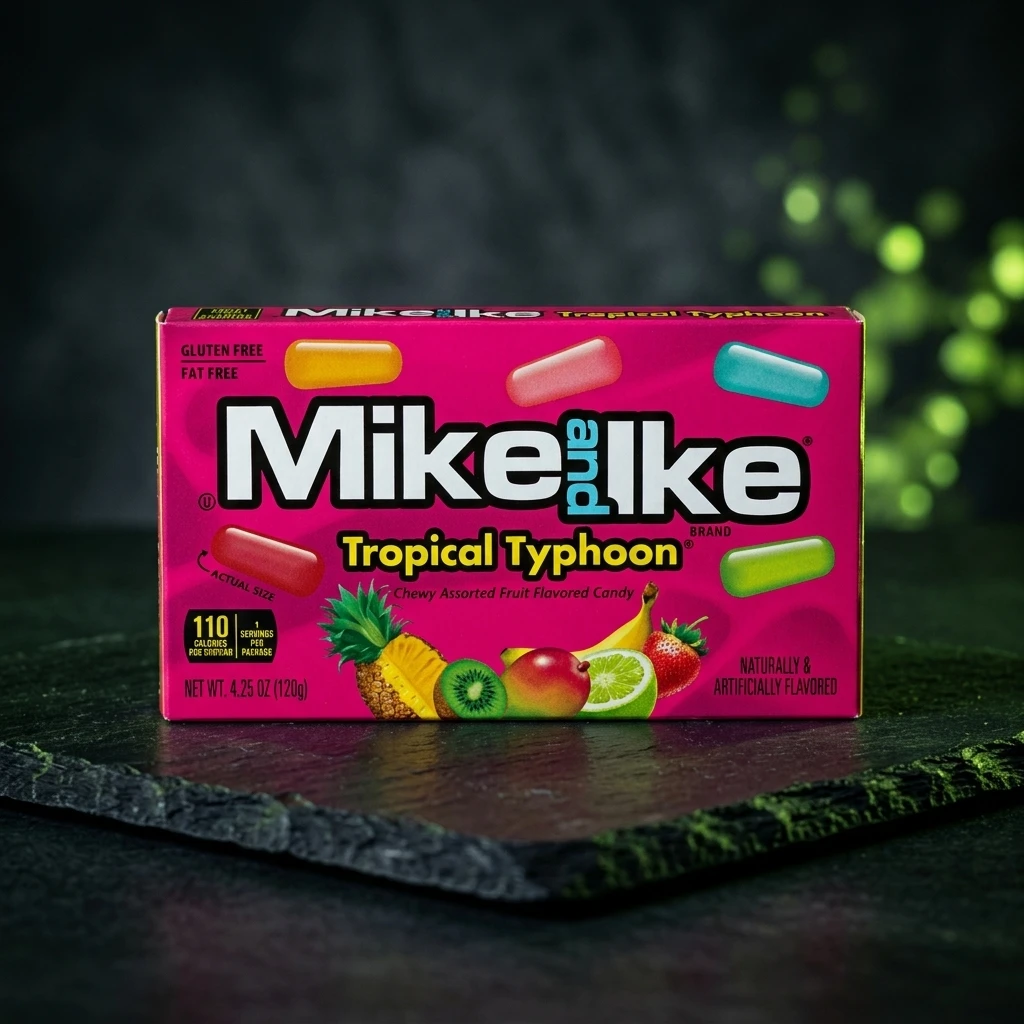 Mike and Ike Tropical Typhoon 120g – Bomboane gumate cu aromă de fructe exotice asortate (Greutate netă: 120 g)